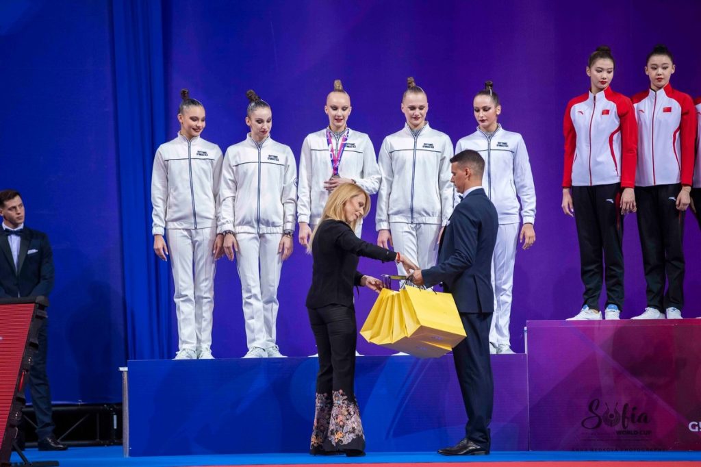 „За мен е огромно удоволствие да връча специалната награда на състезаващия се под неутрален флаг руски ансамбъл за впечатляващото му представяне. Ние сме горди, че имаме възможност да подкрепим престижния форум, който събра елита на художествената гимнастика“, сподели г-жа МакКий.